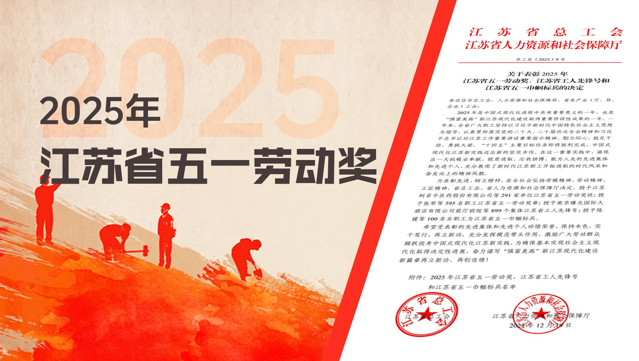 近日,江苏省总工会、省人力资源和社会保障厅联合发布表彰决定,常州强力电子新材料股份有限公司光荣获得2025年“江苏省五一劳动奖状”。